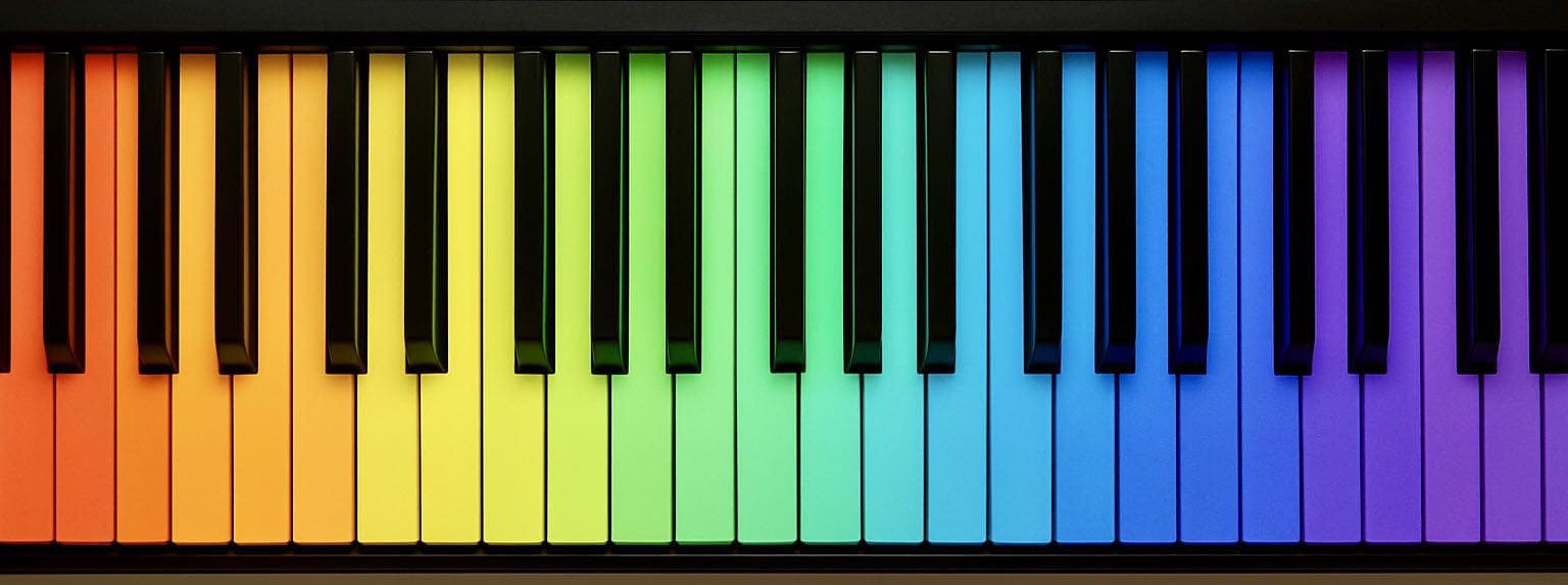 Stell dir vor, du hörst ein Klavier spielen und der Pianist spielt den Ton G mit 392 Hz. Genau dieser Ton entspricht der Farbe Rot. |